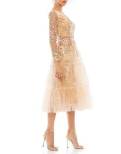 Mac Duggal Long Sleeve Midi Dress