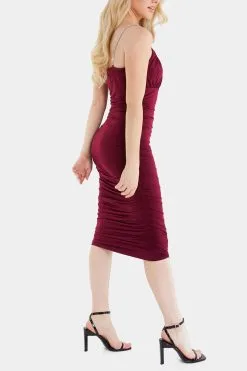 Quiz Berry Ity Ruched Bust Diamante Strap Midi Dress