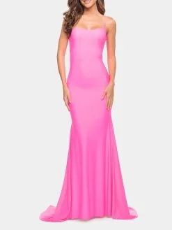 La Femme Illusion Lace Bodice Sweetheart Strapless Dress