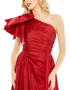 Ieena For Mac Duggal Draped Bow One Shoulder Over Skirt Gown