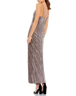 Ieena For Mac Duggal Pleated Metallic V-Neck Maxi Dress
