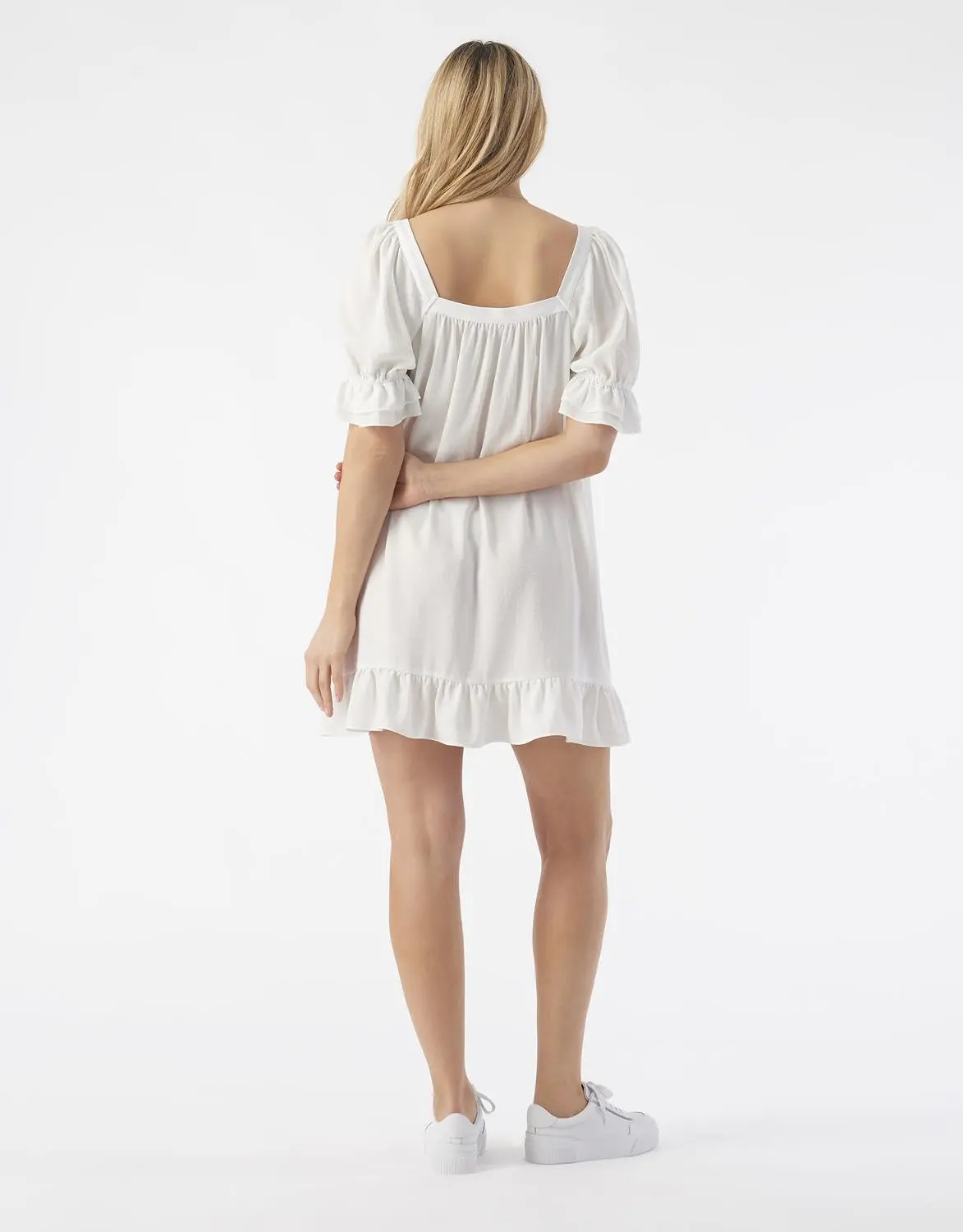 Our new favorite mini dress. Available in both print and plain fabric, this roomy smock dress is super flattering, perfect for laid-back days. With its flippy shape, puff sleeves and button placket this will be your go to summer dress.