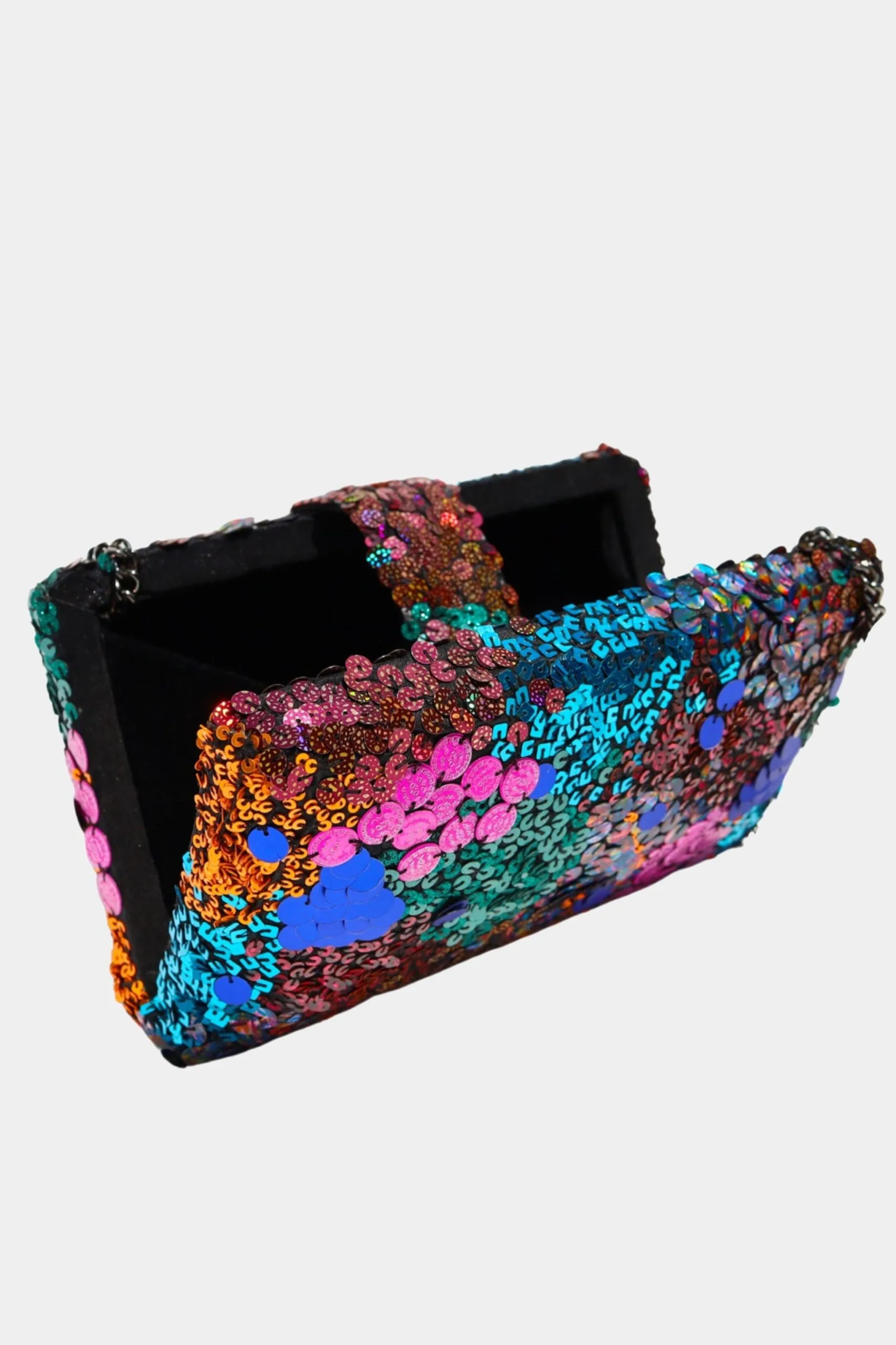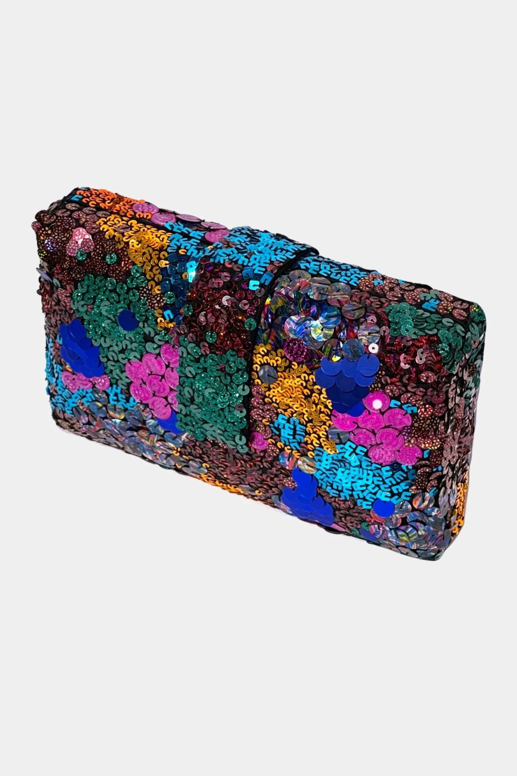 - Hand-embroidered sequin box clutch