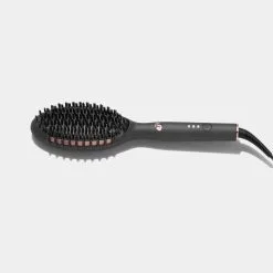 - How to use: Start with completely dry, detangled hair. Twist the top part of your hair out of the way and secure it with a section clip. Gather the bottom half of your hair into another clip leaving out a 2” section to begin styling. Brush the section from root to tip, gliding slowly in the direction of hair growth. Continue working with 2” sections until hair is fully styled. Turn the smoothing hair brush slightly to use the heated edge for smoothing and adding volume at the roots. When nearing the ends, turn the brush slightly, as the heated edge will help create shape and bend at the ends. For more styling versatility, twist the brush while combing through hair to add a gentle wave to your strands.