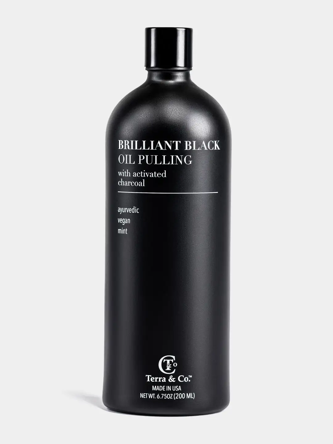 - Brilliant Black Oil Pulling 6.75 oz – Tag teaming natural microbial properties of MCT coconut oil and vitamin E work to restore pH balance, reduce inflammation and buildup, ‘pull’ bacteria, promote saliva production and moisturize gums, leaving a subtle refreshing feel