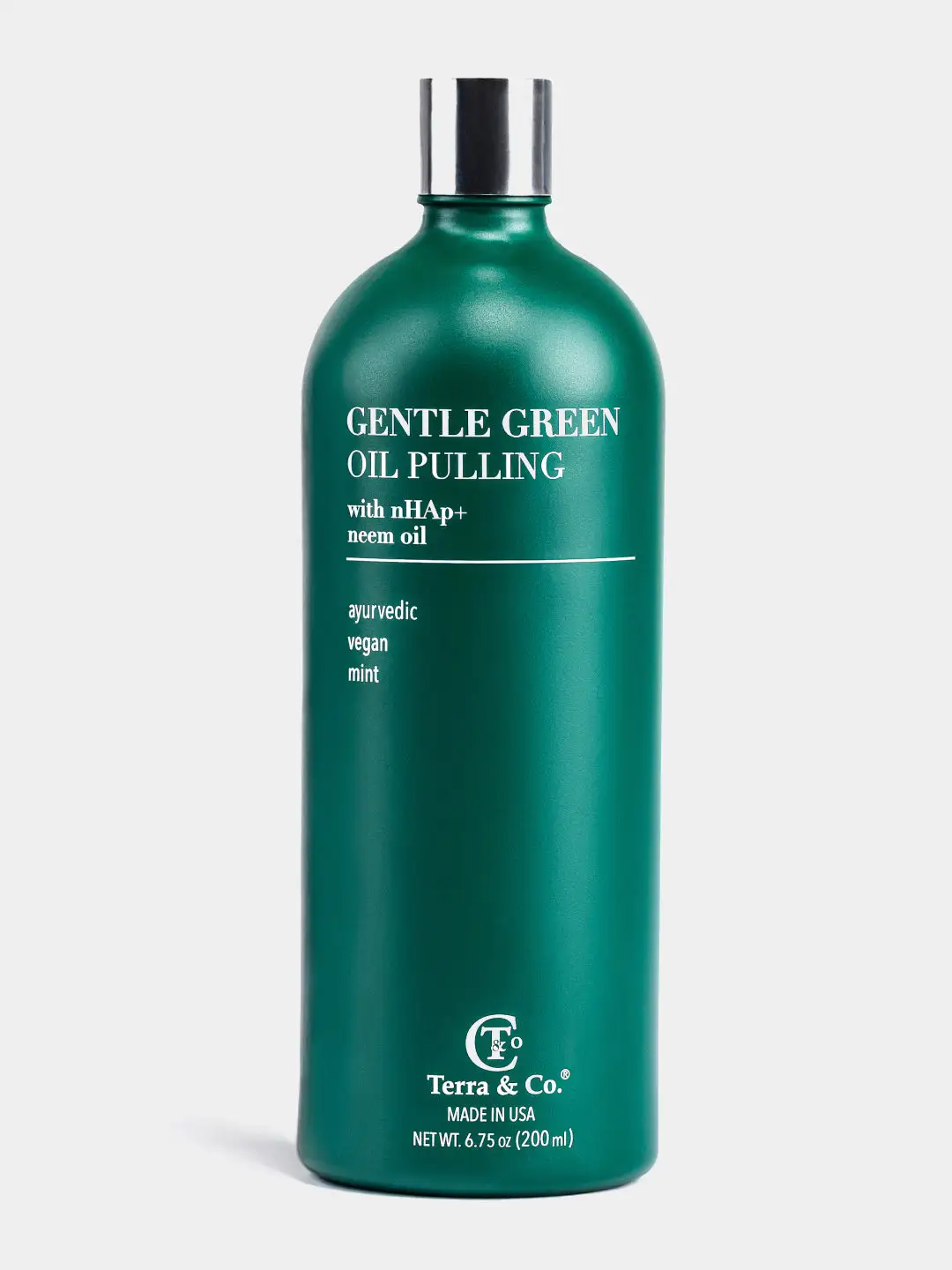 - Gentle Green Oil Pulling: The new Ayurvedic powerhouse is charged with non-toxic mineral nano-hydroxyapatite (nHAp) to strengthen enamel and prevent microcavities. Gently detoxify your mouth and body by reducing plaque and bacteria with our proprietary blend of prebiotics, Neem, Hemp, and Moringa oils for ultimate teeth protection and cavity prevention.