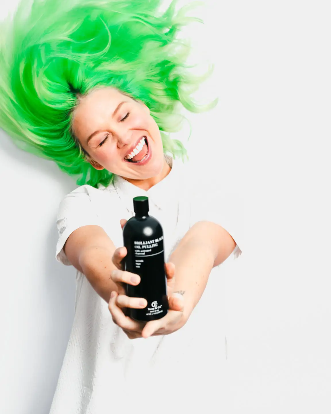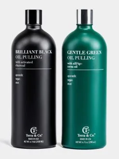 - How to use: Brush your teeth and scrape your tongue using a tongue scraper as part of your usual am/pm routine. Remove the stopper and take a small sip (approx. 1 teaspoon) of oil directly from the bottle. Start your day with a swish of Gentle Green Oil Pulling followed by a nightly sip of Brilliant Black Oil Pulling. Swish 2-5 mins (the longer the better!).