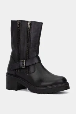 The Genevieve boots are living proof that you don’t have to sacrifice comfort for style. Give your look an edgy touch in this burnished doubled zipper booties, strap on and enjoy the autumn adventures ahead.