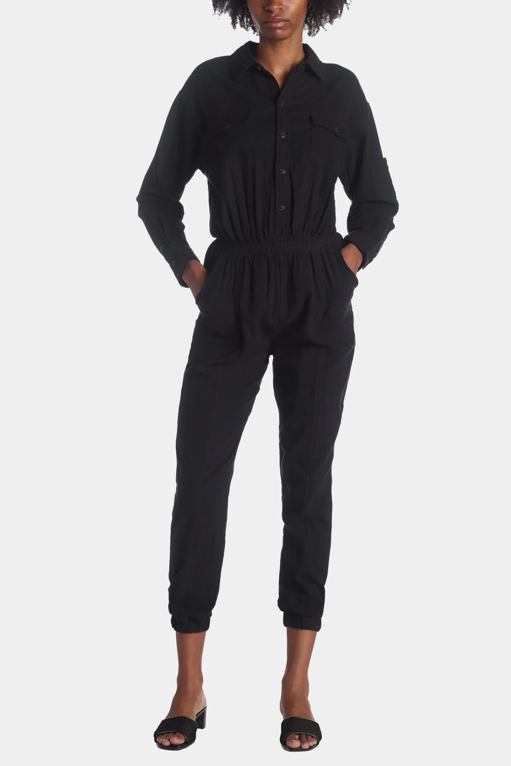 A tailored and chic jumpsuit in an airy twill gauze that has so many stylish features you won’t want to take it off!