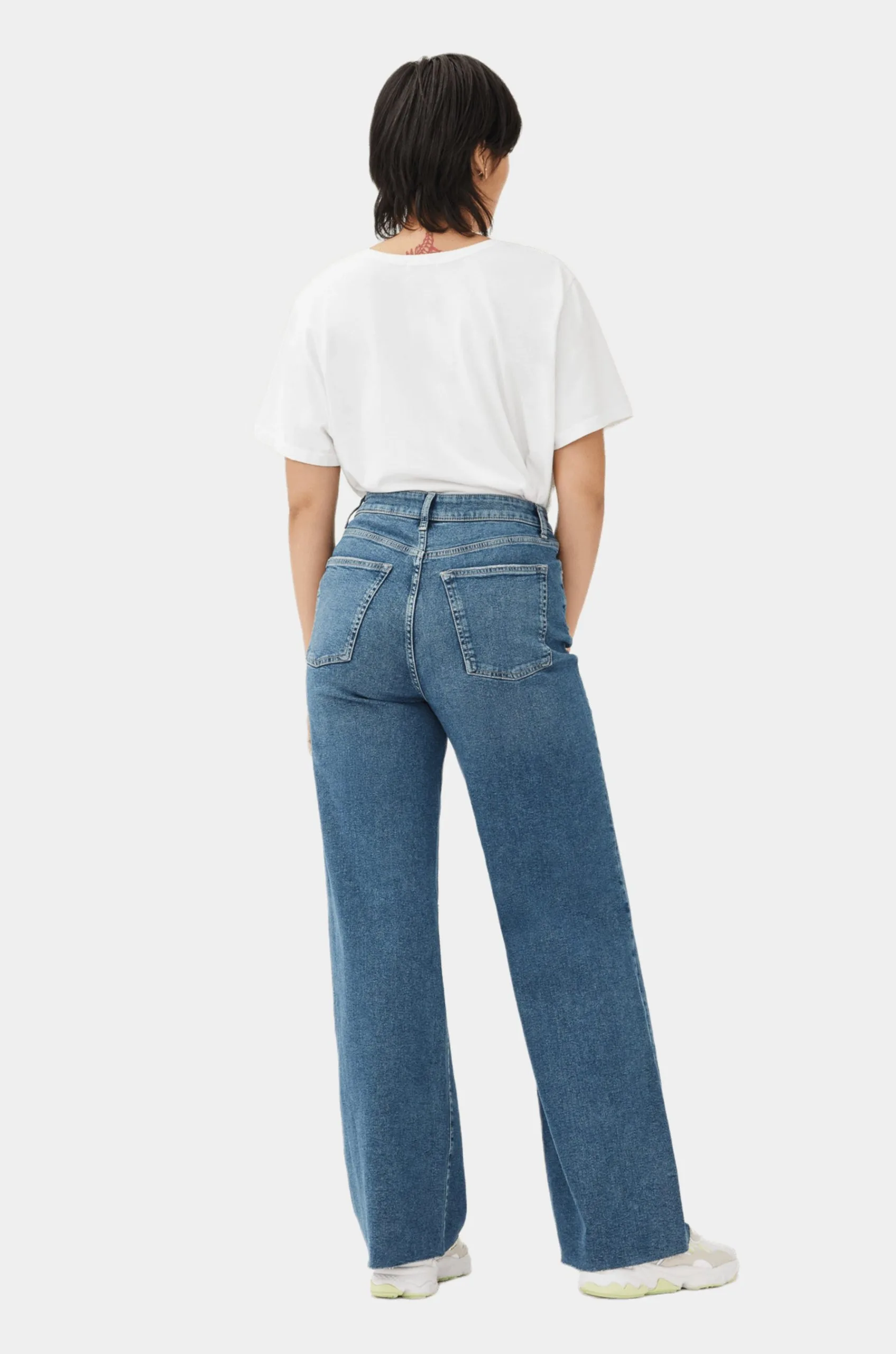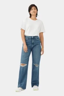 With a luxuriously laid-back look that reminds us of the south of France, NCE is right at home on the Côte d’Azur or just about anywhere else. Designed with a gently sculpting high-rise fit, these wide leg jeans are casual yet always sophisticated. Zenia is a medium indigo wash with heavy destruction at the knees.